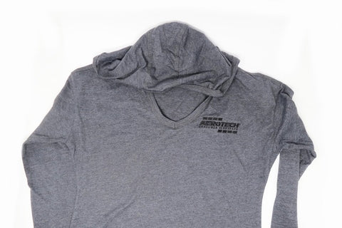 This New Era® hoodie tee provides ultimate comfort and style! This modern-style hoodie tee is made of 4.3 oz 50/38/12 polyester/ring-spun combed cotton/rayon for a trifecta of softness. Features moisture-wicking technology providing long-lasting comfort. Constructed with Dolman sleeves with thumbholes at the cuffs, a drop tail hem, and a V-neck collar for a flattering feminine look. On-trend look is completed with a front pouch pocket and a three-panel hood. Enjoy the lightweight comfort of a t-shirt, combined with the look of a hoodie; this shirt makes a great layering piece. Embroidered with the AeroTech logo.