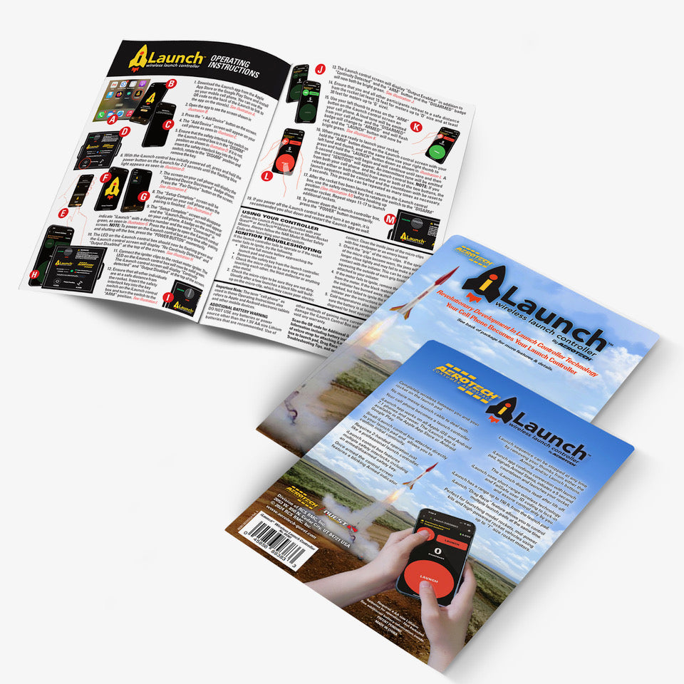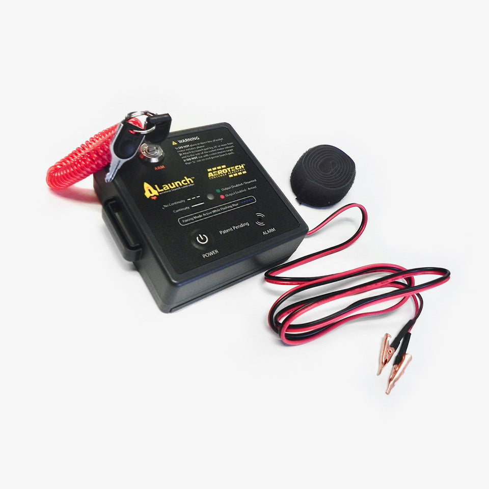 Small iLaunch control box attaches directly to your launch pad and allows you to confirm initial continuity. Requires 2-handed operation just like a professional launch controller.