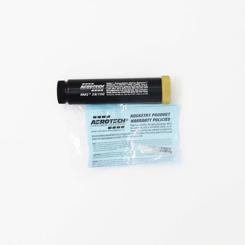 For use with all AeroTech RMS-29/100 high power motor reload kits. This reusable AeroTech RMS-29/100 motor hardware set includes the aluminum motor case, motor forward closure, motor aft closure, and a 1cc tube of the Super-Lube grease for assembly. Motor reloads sold separately. Important: High Power RMS reload kits are not compatible with Mid Power RMS products.