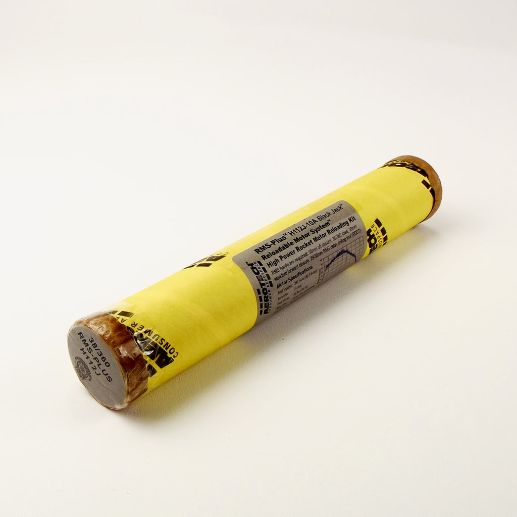 This RMS motor reload utilizes RCSs exclusive Black Jack™ aerospace grade composite propellant formulation, which produces a visible black exhaust plume and a denser dark tracking smoke. Black Jack™ motors provide a higher level of thrust than White Lightning™ motors of the same total impulse and are perfect for high lift-off acceleration.