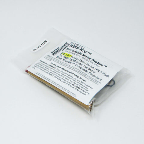The AeroTech Reloadable Motor System RMS is an aluminum cased reusable motor in kit form that is assembled by the user. You will need AeroTech RMS-18/20 motor hardware to build and complete the motor for many reliable flights. Motor hardware is available separately in a complete set, and also as individual parts. Important: Mid Power RMS reload kits are not compatible with High Power RMS products. This RMS motor reload utilizes RCSs exclusive Blue Thunder™ aerospace grade composite propellant formulation, which produces a gorgeous bright violet-blue flame with a minimum of exhaust smoke. Blue Thunder™ motors provide a higher level of thrust than White Lightning™ motors of the same total impulse and are perfect for high lift-off acceleration.