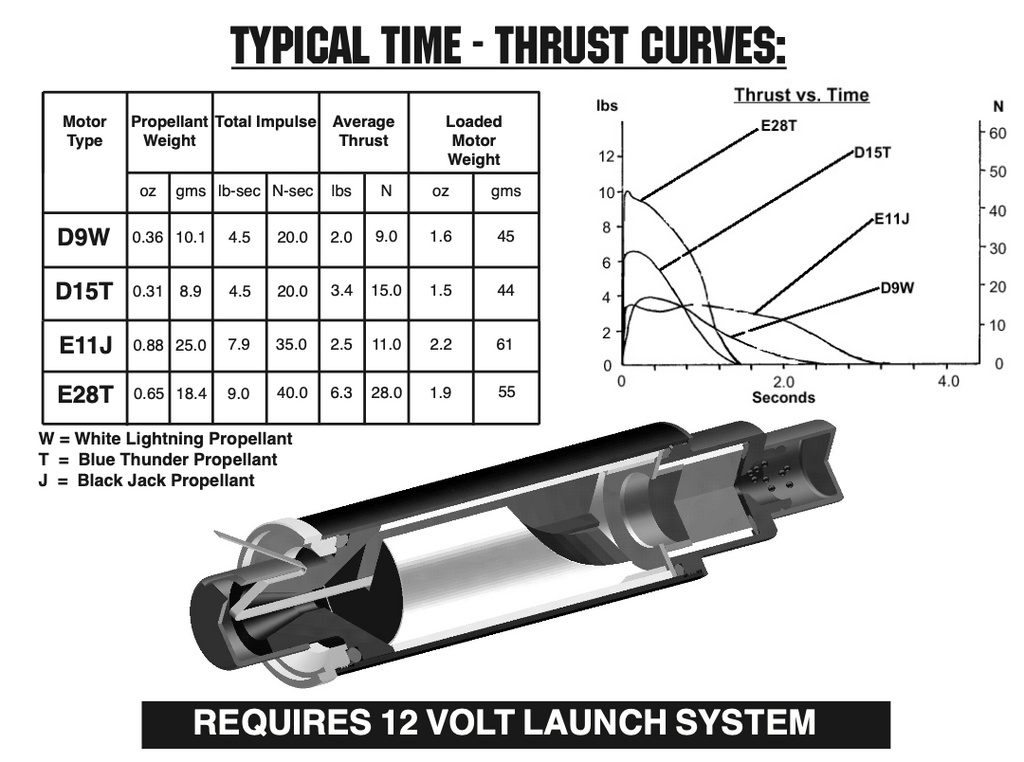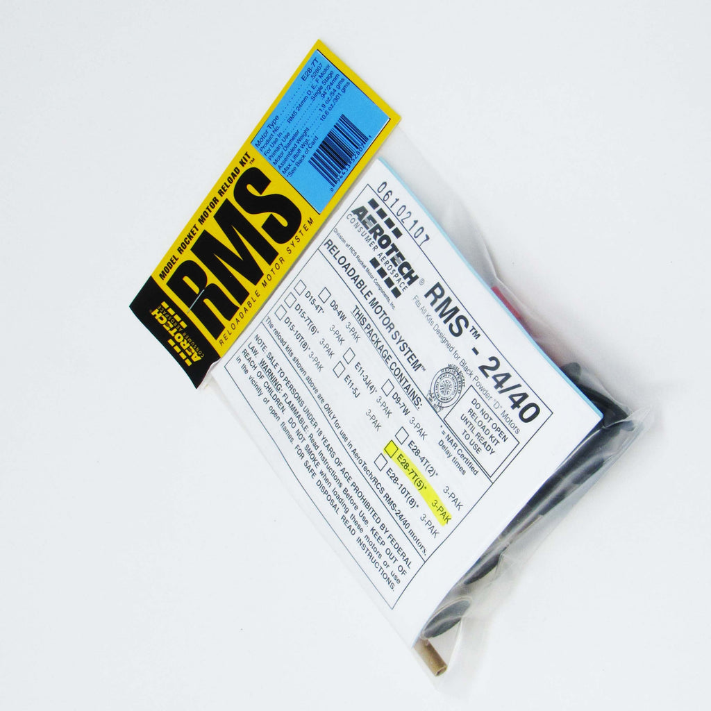 The AeroTech Reloadable Motor System RMS is an aluminum cased reusable motor in kit form that is assembled by the user. You will need AeroTech RMS-24/40 motor hardware to build and complete the motor for many reliable flights. Motor hardware is available separately in a complete set, and also as individual parts. Important: Mid Power RMS reload kits are not compatible with High Power RMS products. This RMS motor reload utilizes RCSs exclusive Blue Thunder™ aerospace grade composite propellant formulation, which produces a gorgeous bright violet-blue flame with a minimum of exhaust smoke. Blue Thunder™ motors provide a higher level of thrust than White Lightning™ motors of the same total impulse and are perfect for high lift-off acceleration.