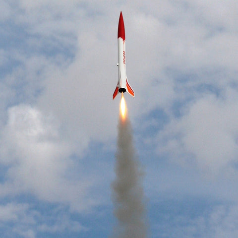 Launch supplies sold separately. Flying with E, F and G rocket motors requires the AeroTech Mantis Launch Pad (89281), AeroTech Interlock Launch Controller (893891), 24mm Q-Jet™, Enerjet  or AeroTech rocket motors with FirstFire™ Initiators and Recovery Wadding. A 12-volt battery source is required for the AeroTech Interlock Launch Controller - Not Included.