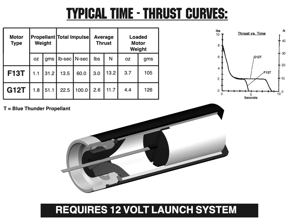 The AeroTech Reloadable Motor System RMS is an aluminum cased reusable motor in kit form that is assembled by the user. You will need AeroTech RMS-R/C-32/60-100motor hardware to build and complete the motor for many reliable flights. Motor hardware is available separately in a complete set, and also as individual parts. Important: Mid Power RMS reload kits are not compatible with High Power RMS products. This RMS motor reload utilizes RCSs exclusive Blue Thunder™ aerospace grade composite propellant formulation, which produces a gorgeous bright violet-blue flame with a minimum of exhaust smoke. Blue Thunder™ motors provide a higher level of thrust than White Lightning™ motors of the same total impulse and are perfect for high lift-off acceleration.