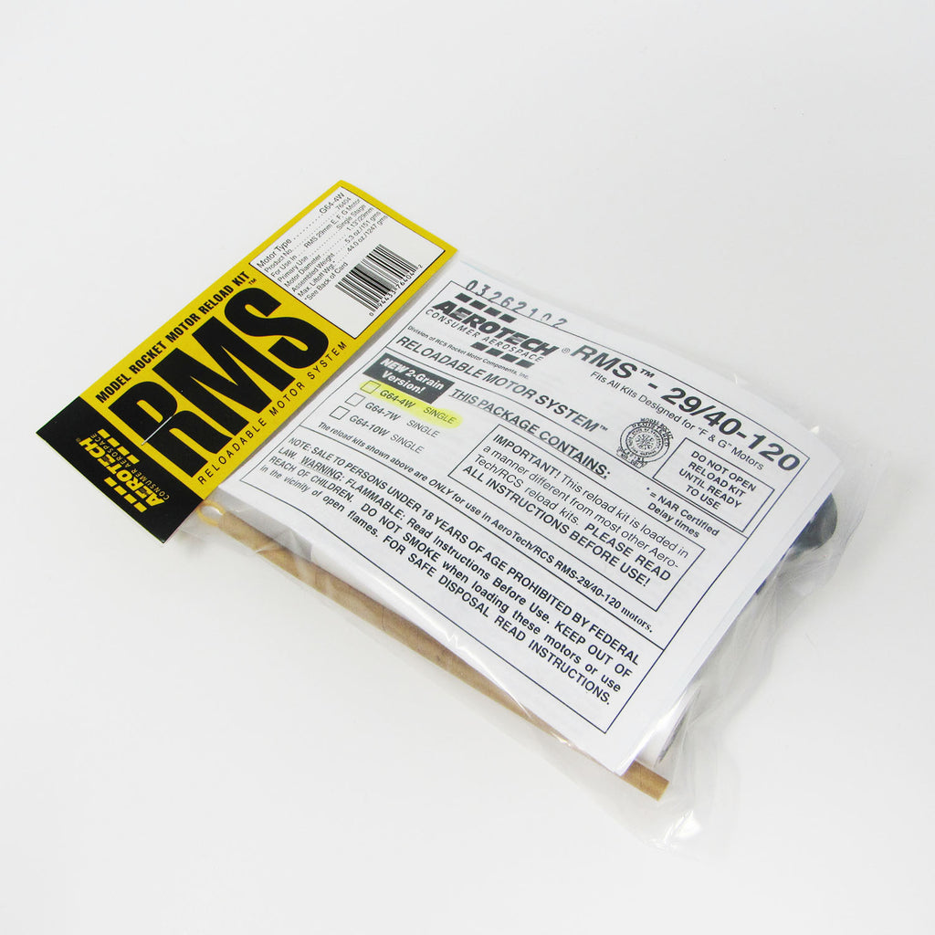 The AeroTech Reloadable Motor System RMS is an aluminum cased reusable motor in kit form that is assembled by the user. You will need AeroTech RMS-29/40-120 motor hardware to build and complete the motor for many reliable flights. Motor hardware is available separately in a complete set, and also as individual parts. Important: Mid Power RMS reload kits are not compatible with High Power RMS products. This RMS motor reload utilizes RCSs exclusive White Lightning™ aerospace grade composite propellant formulation, which produces a gorgeous bright white flame with lots of dense white smoke and a throaty roar at lift-off.