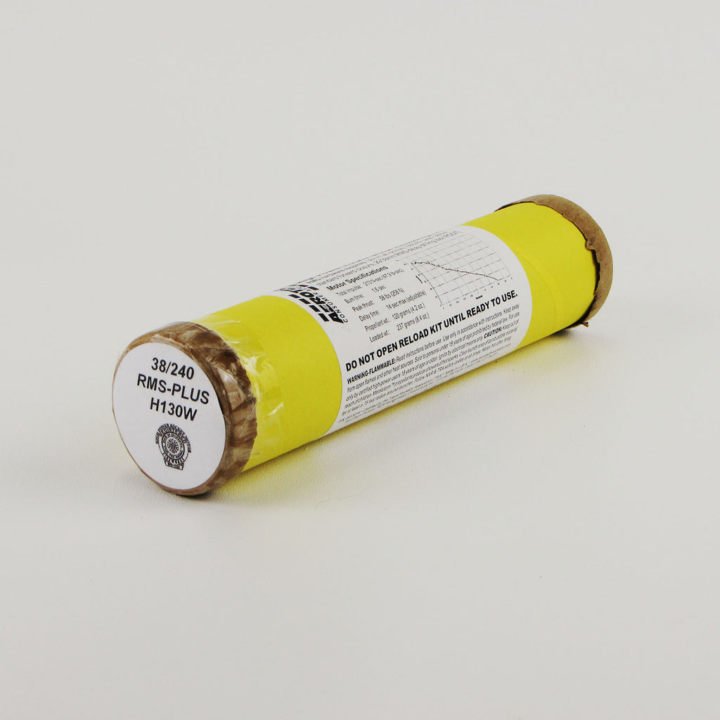 The AeroTech Reloadable Motor System RMS is an aluminum cased reusable motor in kit form that is assembled by the user. You will need AeroTech RMS-38/240 motor hardware to build and complete the motor for many reliable flights. Motor hardware is available separately in a complete set, and also as individual parts. Important: High Power RMS reload kits are not compatible with Mid Power RMS products. You will need to set the desired delay time using the 18-38mm Delay Drilling Tool (RDDT), Not Included. The 18-38mm Delay Drilling Tool (RDDT) is available in the AeroTech Accessories section of this website.
